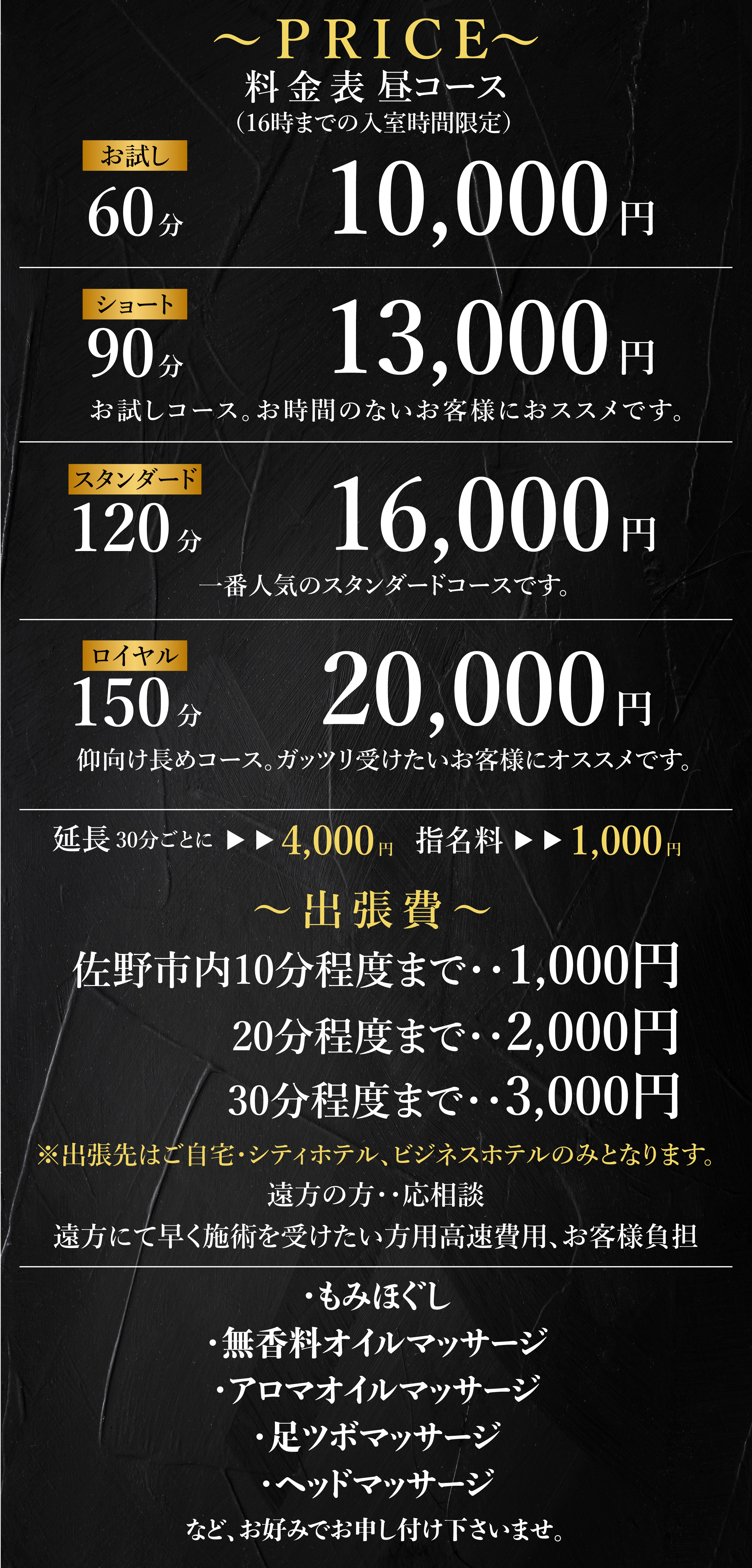 当店では性別かかわらず、ペーパーショーツ着用での施術になります。当店は風俗系マッサージ店ではございません。また、法令及び公序良俗に反するような行為も一切行なっておりません。メニューにないサービスを要求された場合や、セラピストが施術続行不可能と判断した場合には、直ちに施術を中止し、ご退店をお願いする場合がございます。その際の料金のご返金には応じかねますのでご了承下さい。また、その後のご利用を一切ご遠慮頂く事もございますので、予めご了承頂きますようお願いします。セラピストの身体に触れる行為は一切お断りしております。