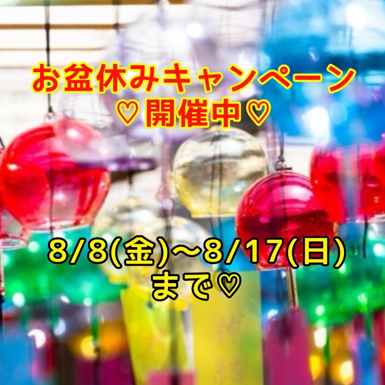 お盆休み期間中8/8(金)~8/17(日)まで!